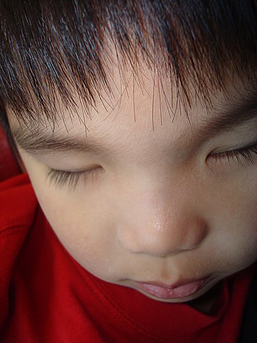 三個小時後,P哥當起店裡的助手,排放顏料罐,而P灝則累到睡著了;