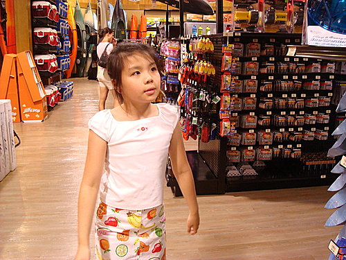 P灝開著購物車(零食和飲料買齊,再到另一家店買肉和香腸囉!)