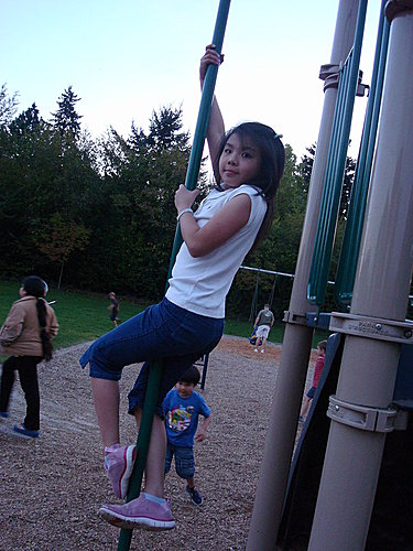 臂力很好,還可以爬桿到頂端