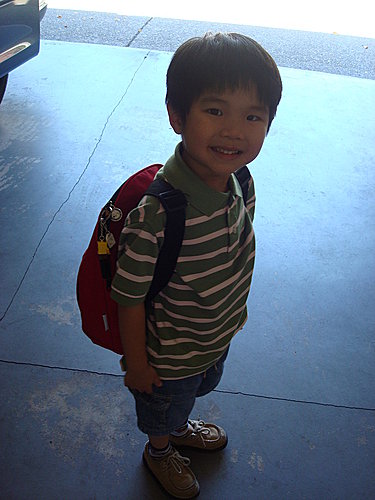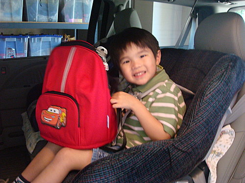 但由於昨晚P灝有些興奮睡不著,所以今早就有些小小的賴床,再加上早餐吃了半個多小時,P灝幾乎是全班最後一個到達的。P灝進入教室後,急急的向P媽說再見,就跑去和同學一起玩,完全沒聽到P媽請他把背在身上的書包放下來。