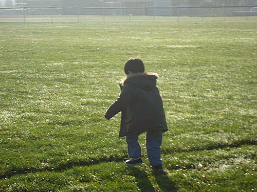 這幾次P哥的球賽,都是被安排在早晨的時段。但隨著天氣轉涼,一早就得到球場報到,已經成為P家人的一種挑戰。(好幾次P媽真想裝病或是昧著良心把鬧鐘關掉,好讓自己能在被窩裡的時間長些。)