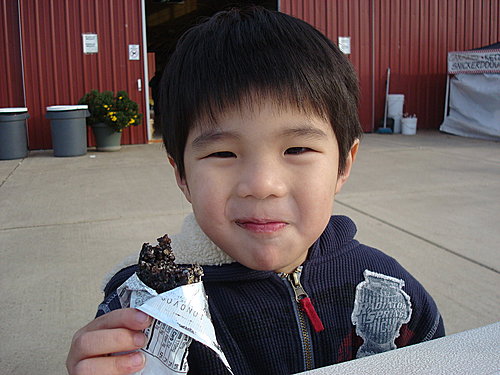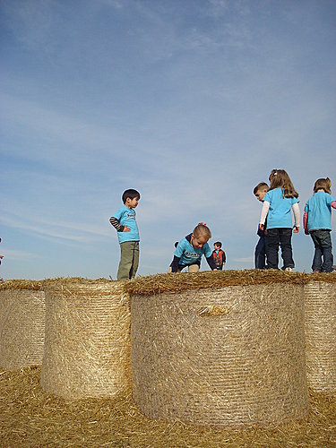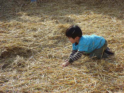 往年P姊或P哥到南瓜田戶外教學時,總是遇到大雨,所以不免得穿著雨衣和雨鞋,弄得滿身泥濘的回家。而今年P灝非常幸運,不但沒有遇到下雨,氣溫也沒有平日的低,所以大人和小孩在南瓜田都玩得非常盡興。