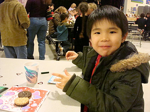 情人節的前兩天,P仔們的班上都舉辦了慶祝會,大家除了互相交換卡片外,也吃了家長們準備的糕點和果汁。