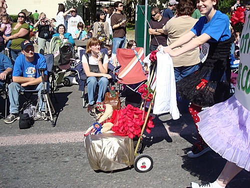 有天P媽看到報紙有個募款遊行活動,只要繳了報名費,就可以在一年一度的花車遊行當日,順著花車遊行路線步行四英哩,結束後還可以在專屬的區域觀看花車遊行。P媽覺得既可募款又能步行健身累積哩程數,結束後又可以觀賞花車遊行,似乎蠻不錯的,於是便幫P姐、P灝還有自己報了名。(P哥當天有小提琴的表演,P爸得前往觀賞,所以P爸和P哥都無法參加。)