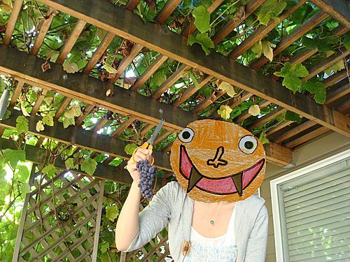 問P媽為什麼不乾脆就把葡萄剪下來,省得為了顧葡萄,把自己搞得神經兮兮的。那實在是因為葡萄還很酸澀,P媽希望它們能多留在藤上些時日,等完全成熟再剪下。