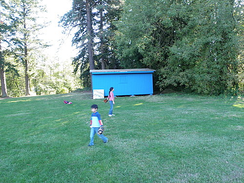 由於天氣難得放晴,所以P爸帶著P伯送的棒球和手套,先和P哥、P灝一起到學校接P姊,然後再一起到校園後方的射箭場練習投球。