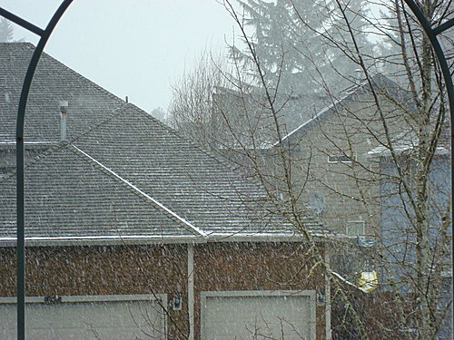 下午,又開始飄起雪來,且愈下愈大。但是氣象報導說下午的這場雪很快就會融化,所以因下雪停課在家又吃又玩了一整天的P仔們,明天應該可以回學校上課了。只是明天開始氣溫驟降,預報氣溫將只有是華氏十八、十九度(約攝氏零下七、八度),而因流感病了三星期的P媽,看來必須全副武裝才能出門了。