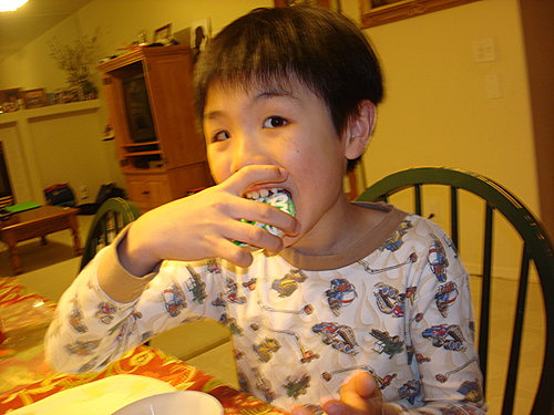 P哥和P灝看到P姊帶回來的餅乾非常的興奮,馬上挑選自己喜愛的餅乾當飯後甜點。