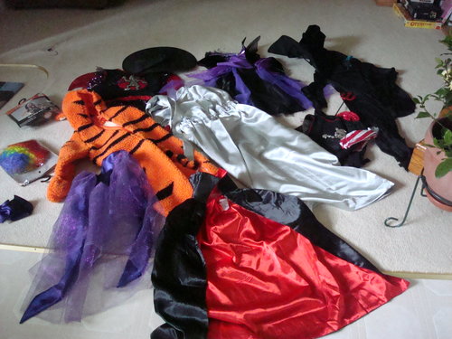 除了尺寸比較小P仔不能穿了都送人外,家裡有好多好多的裝扮服。