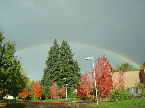 好幸運,這次可以清楚看到兩道(就是虹與霓,以前讀書時學到,下面這道是虹,上面那道是霓,顏色排列順序是相反。上面的霓是再次的反射造成的,所以可以清楚看見實屬難得。)