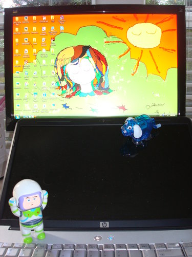 很可愛(後來P仔們發現冬天還沒到,為什麼P媽把電腦桌面換成冬天,要P媽換回來再拍一張。)