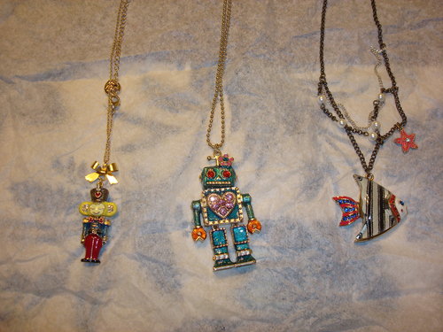 後來和P爸在店裡,看到這三條項鍊,P媽實在忍不住就買回家。(P媽從小就對猴子、魚和機器人這三樣的免疫力非常非常的低。)