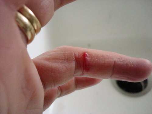看P媽多寵牠們,為了切蘋果給松鼠吃,居然把手指切了一大刀。