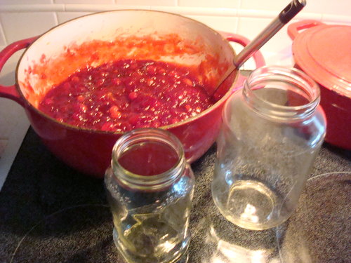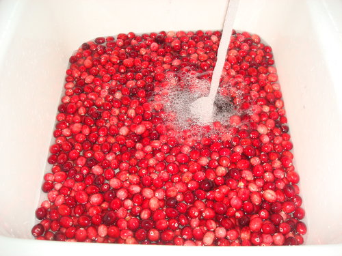 買回來的火雞與蔓越莓。這樣的磅數火雞,通常解凍約一天半,所以先做蔓越莓醬。