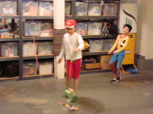 接著春假的幾天,都是暴風雨的天氣,只要沒出門,P仔們就在車庫玩。