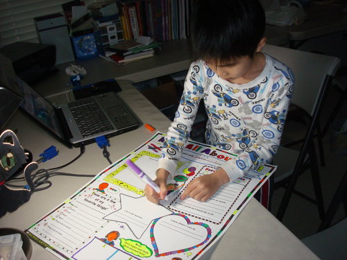 這是製做自我介紹的報告。小P灝班上每星期會抽籤選出一小朋友做自我介紹。這被選出的小孩叫做V.I.P.,在這個星期可享有很多的特權。(不過P媽覺得也不算甚麼特權,倒是比較像班長,帶帶隊發發東西,還得管東管西的要求大家守秩序。)