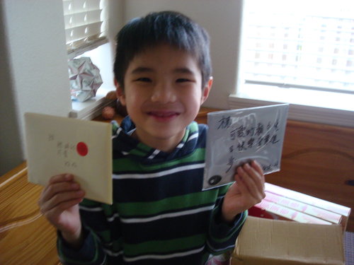 包裹裡有P家人愛吃的小點心外,還有爺爺奶奶寫給小P灝的生日卡,以及兩個大大的紅包,讓小P灝在生日時,買自己最喜愛的玩具。