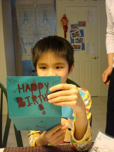 因為意外得到一個蛋糕,不想放在冰箱冰幾天,所以大家決定提前為小P灝過生日。