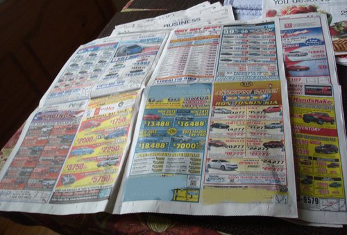 很幸運的,最後車商在附近幾州為P家找到唯一一輛P爸和P媽想要的車子。不僅車子的顏色或是P爸P媽堅持的內裝都有,但是相對的配備上也多了許多過於奢華,或是P爸和P媽不想要的(像是有sunroof就覺得多餘了,結果居然還有個moonroof,整個車頂都是"窗"。),超過了P爸和P媽的預算許多。