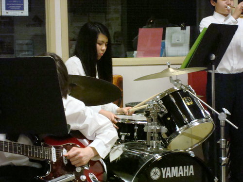 話說七年級的P姐,可以在學校提供的自選項目中選兩個科目當主修。P姐拿了一般樂團以及爵士樂團兩門課當主修(P媽之前說過,很希望P姐拿一門語言....)。在一般樂團的P姐是打擊樂手,爵士樂團則是鋼琴手。