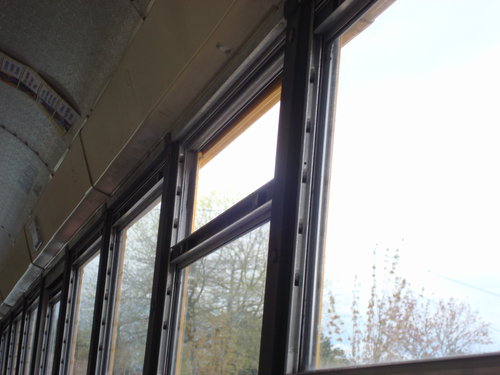 校車的窗子是由上往下拉開的,所以空氣由上面吹進來。