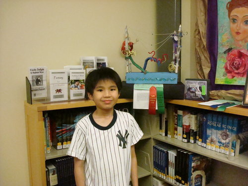 居然看到P姐學校讀書報告得獎的作品,被市立圖書館借去展示。(那張油畫少女與玫瑰就是第一名的作品)